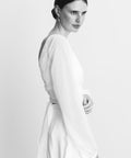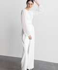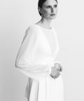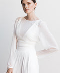 De mouwtjes zijn licht en afgewerkt met een enkel fijn knoopje voor een subtiel, tijdloos detail. Aude is ideaal te combineren met een rok, satijnen broek of als verfijnd accent over een bruidsensemble.