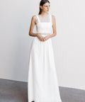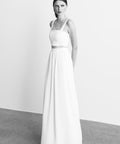 Roxanne is een ode aan vrouwelijkheid en verfijning. Deze elegante bruidsrok valt soepel langs het lichaam dankzij de zachte, vloeiende stof die bij elke beweging gracieus meebeweegt. De fijne plooitjes aan de tailleband zorgen voor een subtiele, flatterende vorm en geven de rok een romantische uitstraling. Perfect voor een moderne bruid die houdt van tijdloze elegantie met een vleugje eenvoud.
