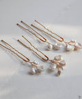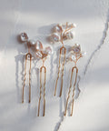 Gold bridal hair pins with branches of baroque keshi pearls.