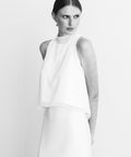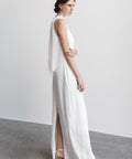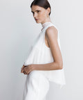 This blouse is perfect for the bride who loves light fabrics and feminine details. This halter blouse pairs beautifully with the Franblouse for a modern, elegant bridal look with a soft, romantic feel.